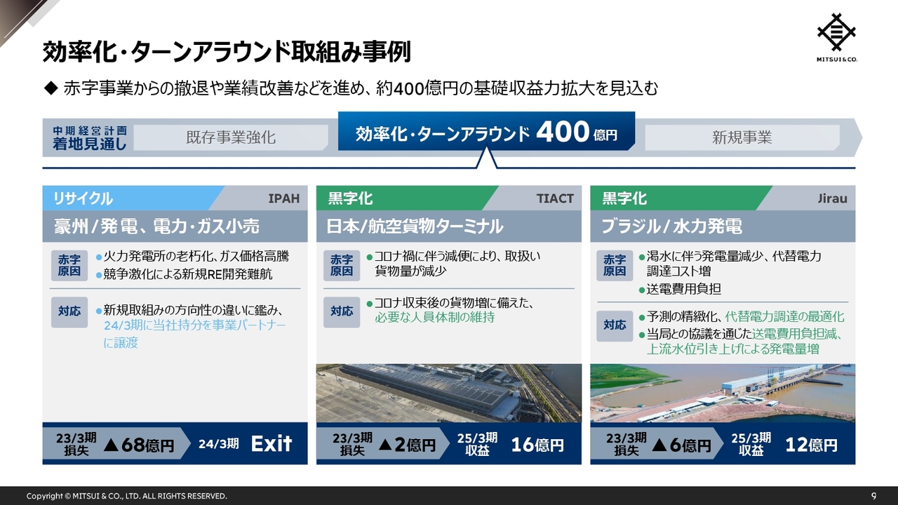 このような効率化・ターンアラウンドの成功事例を今後も着実に積み上げ、次期中経でも継続的に成果を上げていきたいと考えています。