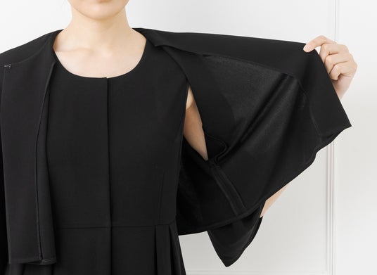 今回の「たためるフォーマル」は、ケープ風の上着を羽織っているような2ピース風ワンピース。