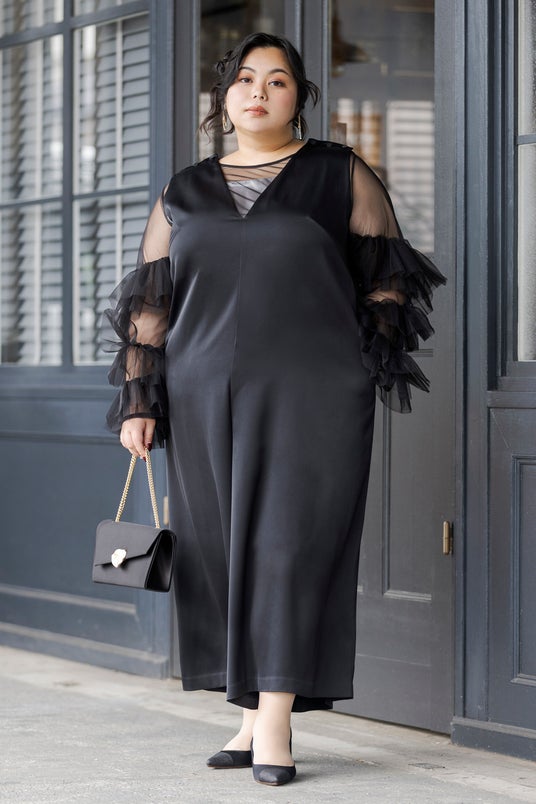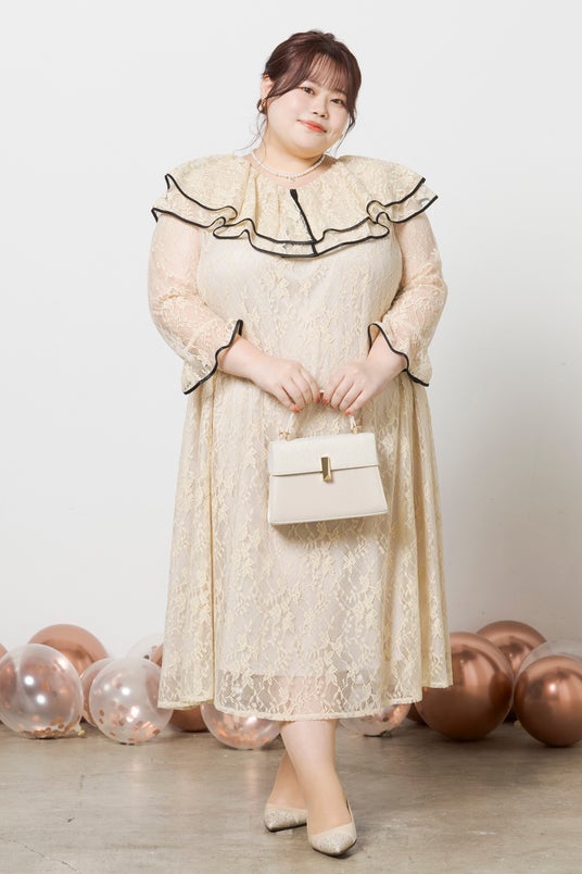 form formaでも人気のドレスデザインでサイズを広げて展開している商品を実際にGLAPOCHAモデルに着ていただいたうえで見えてきたプラスサイズさんならではの悩みを解消しつつ、<着たい!欲しい!>を詰め込んだドレスを企画いたしました。