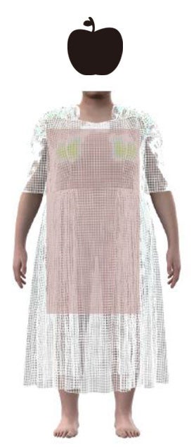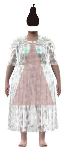 プラスサイズのリアル体型を反映した3Dアバターでシュミレーションをして着心地をデータ化し、ぽっちゃり体型の分類例に多い3つのタイプの体型を洋なし型(ボトムにボリュームがある)、りんご型(トップ/ボトムが同じ)、ぶどう型(トップにボリュームがある)と設定し、どのタイプでも美しく着用いただけるシルエットを実現しました。