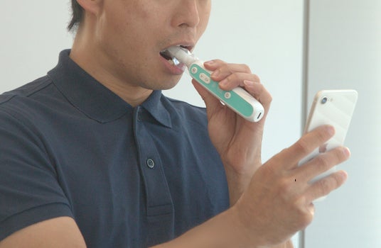 口腔内を専用カメラで撮影しスマートフォンで汚れを確認できる