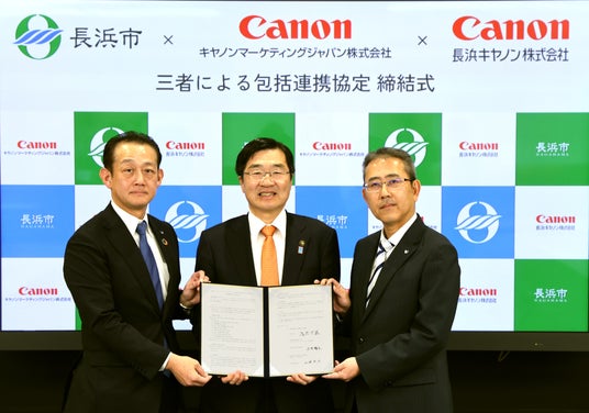 キヤノンマーケティングジャパン株式会社(代表取締役社長:足立正親、以下キヤノンMJ)と長浜キヤノン株式会社(代表取締役社長:山崎 照久、以下長浜キヤノン)は、2025年3月16日に滋賀県長浜市(市長:浅見 宣義)と包括連携協定を締結しました。長浜市のめざすまちの姿「新たな感性を生かし、みんなで未来を創るまち 長浜」の実現に向けて連携協力することで、新たな価値を創造し、社会課題の解決を支援します。