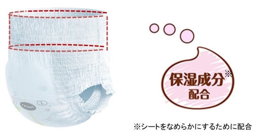 ・胴回りのシートに天然由来の保湿成分を配合し、赤ちゃんのお肌にやさしい使い心地です。