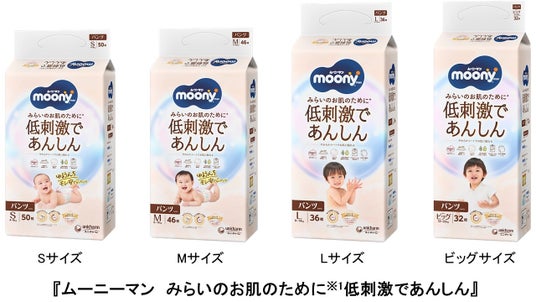 そこでこのたび、デリケートな赤ちゃんのお肌をやさしく守るために、天然由来の保湿成分を配合したやわらかシートを採用した『ムーニーマン みらいのお肌のために※1低刺激であんしん』を、全国で順次発売します。
