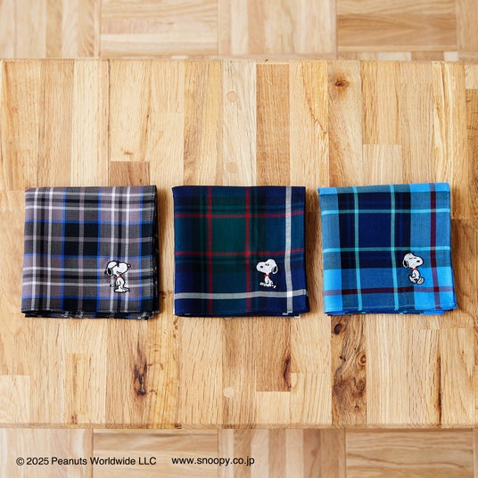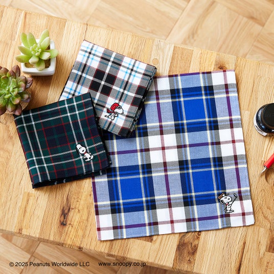 スヌーピーのワンポイント刺繍を施したチェック柄です。カジュアルなので気軽に持てる雰囲気が魅力。たくさん集めて、その日の気分に合わせて選ぶのも楽しそうです。