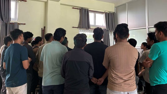 実習講義を受ける理系学生たち(カトマンズ大学)