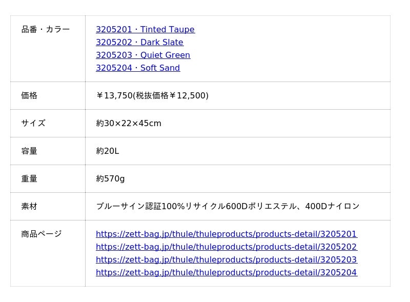 ゼット株式会社(本社/大阪市天王寺区、代表取締役社長/渡辺裕之)が取り扱うスウェーデンのブランド 『THULE』(スーリー)は、サステナブルな素材でクラシックデザインをモダンに再解釈した、気軽な日常使いのための【Thule Notus Backpack】(スーリー ノータス)から、2025年シーズン限定カラー4色を5月に発売いたしました。定番のBlackを加えた計5色で展開いたします。
