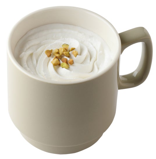 ●「アーモンドミルクのショコラティーラテ」(490円)※乳成分を含みますアーモンドミルクの香ばしい香り、チョコソースの甘さと紅茶のすっきりとした後味が感じられるホットのロイヤルミルクティーです。上からホイップクリームを絞り、ローストピスタチオをのせてご提供します。