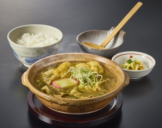 ◆黒豚カレー煮込みうどん定食 1,390円(税込 1,529円) ・黒豚カレー煮込みうどん、ご飯、香の物