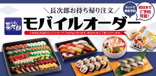 長次郎お持ち帰り注文からのご予約、または「活⿂廻転寿司にぎり長次郎」 「廻転寿司CHOJIRO京都」各店舗にてご予約を承ります。
