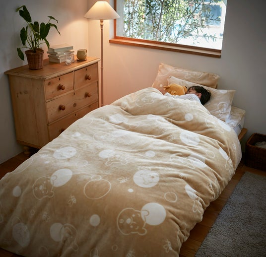 秋口や春先は布団を入れず一枚使いにしても。しっとりなめらかな肌触りで、抜群のあたたかさ
