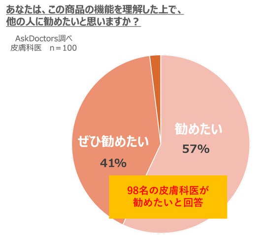 皮膚科医100名のうち、98%が「他の人に勧めたい商品」と回答
