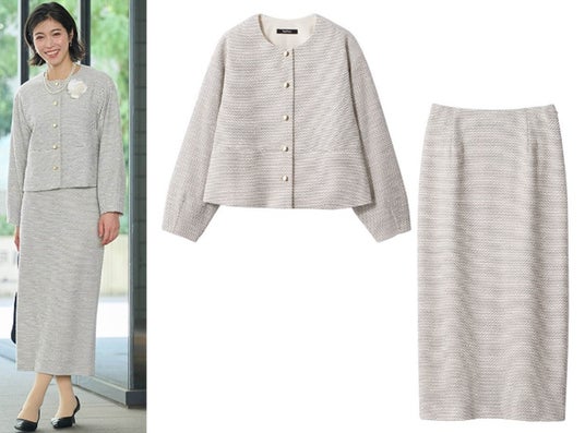 表情がありながら、伸縮性抜群のカットツイードで上品な印象のジャケットとスカートの2点セット