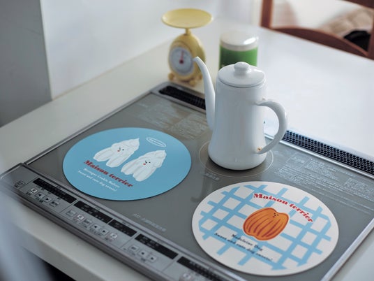 メレンゲクッキーとマドレーヌのイラストを施したIHマットです