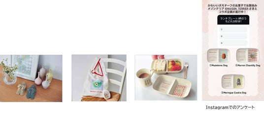 また、「メゾン・テリア」がSNSを中心に活動していることから、SNSを意識した商品も開発しました。メレンゲクッキーをデザインした「磁器のオブジェ」は、家に飾るのはもちろん、お菓子と一緒に並べて撮影することでSNS映えするアイテムです。「2つ仕切り皿」の柄を選ぶ際は、Instagram上でアンケートを取って決定するなど、SNS上の意見を取り入れながら企画を進めました。