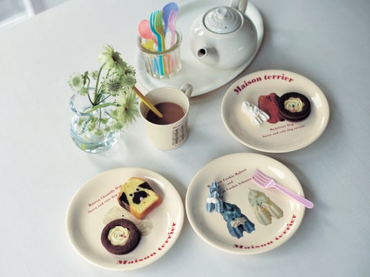 ベルメゾン商品開発担当者の岡亜沙美の「『メゾン・テリア』のお菓子たちが可愛すぎて食べるのがもったいない、ずっと手元に残しておきたい」という想いからコラボレーション企画がスタートし、「メゾン・テリア」の世界観を、日々の暮らしの傍らで感じることができるアイテムを開発しました。マグカップやお皿は「メゾン・テリア」の犬モチーフのお菓子の可愛らしい雰囲気をそのまま再現するために、日本の優れた転写技術を持つメーカーと開発しました。また、お菓子の柄が特徴のIH用焼け焦げ防止カバーマットは、IHを汚れから守る便利なアイテムです。汚れたら水洗いできるので、お手入れも簡単です。その他にも、ベルメゾンのこれまでの経験を活かした実用的で、日常使いしやすいキッチングッズやエコバッグなどのコラボレーションアイテムを揃えました。