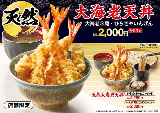 - 『天然大海老天丼』店舗限定商品として販売中!