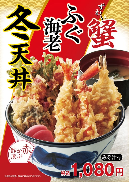 天丼てんやの冬季限定新作!蟹・ふぐが入った華やかな『冬天丼』、蟹・平目が入った豪華な『冬 ご馳走天丼』が11月8日(金)より販売開始!