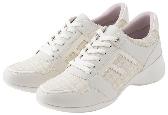 働く女性たちの声を聞いて、ラクで履き心地の良いパンプスやシューズを提案するfuwarakuから今年5月に発売された「ウェッジスニーカー」は、インソールに体温を感知して足の形にフィットする素材を採用し、毎日のコンディションや、朝夕の時間帯によるサイズ差など、一人ひとりの足に合わせフレキシブルに対応できる嬉しい機能を搭載していて、発売よりご好評をいただいております。カップインソールは、かかとの横ブレを防ぐ形状や足裏をサポートする中足骨クッションなど、履き心地にこだわっています。さりげなく美脚見せができる4cmのウェッジソールも嬉しいポイントです。