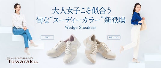 ラクもおしゃれも叶う!大人世代にうれしいシューズ「fuwaraku(フワラク)」のウェッジスニーカーから、大人ヌーディーカラーが新登場。