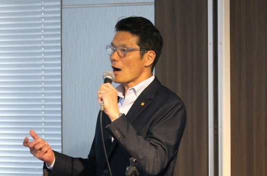 2025年3月期決算説明会・個人投資家事業説明会をミーティングスペースAP日本橋ならびにライブ配信にて開催し、2024年に引き続き、個人投資家にも開放し、すべての投資家を対象としました。参加者は、リアル参加96名にWeb参加を加えた133名に上り、多くの投資家にフォーバルを知っていただく機会となりました。説明会では、株式会社フォーバル常務取締役の谷井より「2025年3月期連結決算の概要」と「2026年3月期の通期見通し」について、代表取締役社長の中島より「F-Japan戦略」をはじめとする今後の成長戦略について説明しました。