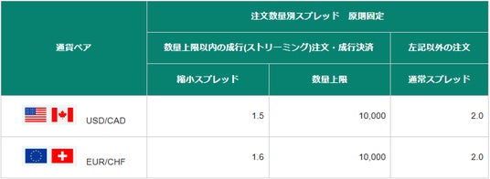 ます。新たに「米ドル/カナダドル」・「ユーロ/スイスフラン」を追加し、全22通貨ペアを業界最狭水