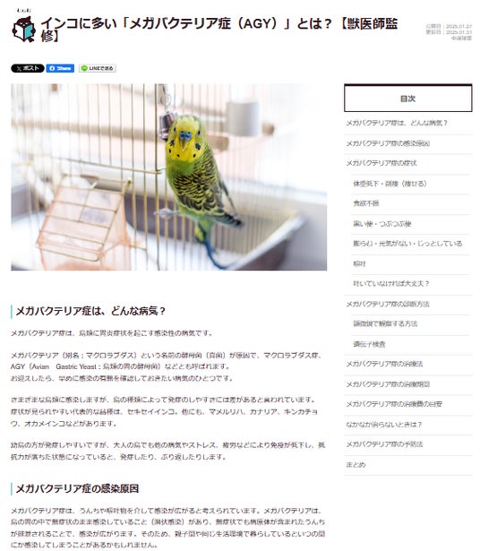 ~アニコム獣医師監修 鳥さん好きの方に向けたお役立ちサイト~