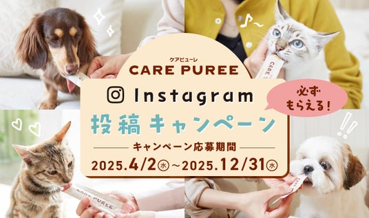2商品の販売を記念してキャンペーンを開催しています。「CARE PUREE」5商品のいずれかをご購入のうえ、対象期間中にSNSで口コミを投稿いただくと、愛犬・愛猫のお写真とお名前が入ったオリジナル缶バッジを全員にプレゼントいたします。