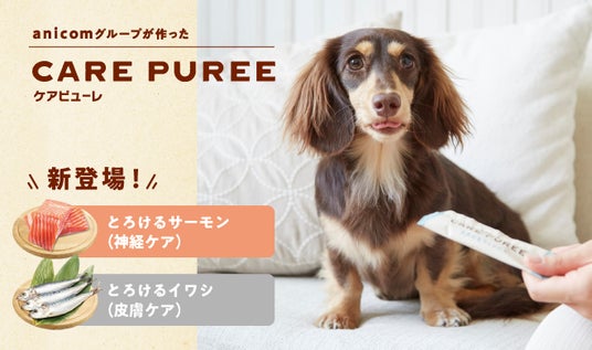ペット保険シェアNo.1(※1)のアニコム損害保険株式会社のグループ会社であるアニコム パフェ株式会社(代表取締役社長 安宅 快、以下 当社)は、愛犬・愛猫の食事を美味しく、健康的にサポートする人気の「CARE PUREE」から「とろけるサーモン(神経ケア)」、「とろけるイワシ(皮膚ケア)」の2商品の販売を新たに開始いたします。