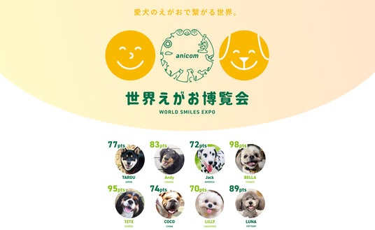 ペット保険シェアNo.1(※)のアニコム損害保険株式会社(代表取締役 野田 真吾、以下 アニコム)は、犬の写真を登録いただくとAIが笑顔度を判定するサイト『世界えがお博覧会』を、4月23日に公開いたしました。飼い主さまにとって大切なわが子である愛犬の笑顔度を判定することで、人間の言葉を話さないどうぶつたちの声に耳を傾けるとともに、私たち人間を幸せにしてくれる犬の笑顔を、世界中へ届けてまいります。