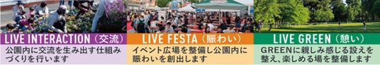 - 3区「LIVE INTERACTION(交流)」:公園内に多世代の交流を生み出す仕組み作りを推進