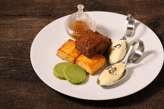 アフタヌーンティーの定番であるスコーンは、プレーンとショコラの2種類をご用意。さらに、ピスタチオバター、トリュフ香るマスカルポーネ、紅玉林檎とアールグレイのコンフィチュールを、それぞれのスコーンに合わせてお召し上がりいただけます。“あえて”クロテッドクリーム以外を合わせる、Cafe 1894流の楽しみ方です。