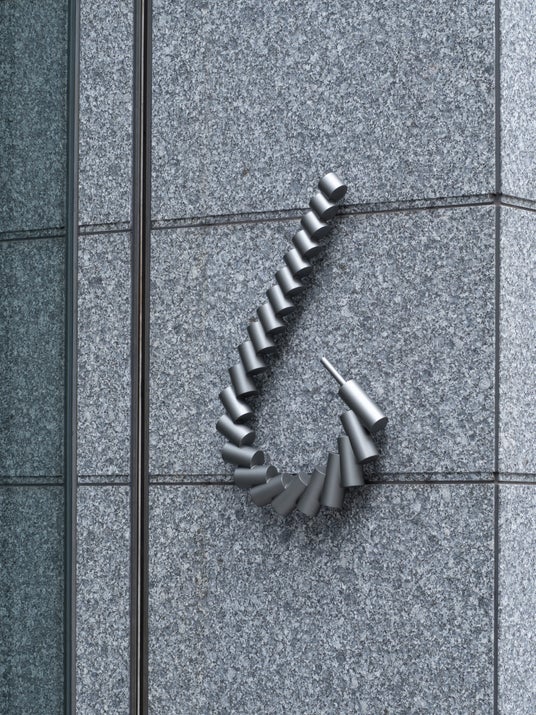 古くから日本の金融街として発展してきた日本橋兜町にとって、数字は特別な価値をもっています。これらのサインは、硬貨を棒状にまとめた棒金や、銭を紐で通してまとめた緡銭(びんせん)と、株価チャートを組み合わせてデザインされています。また、円柱状のローソク足が有機的に変化し数字を形づくる様は、経済活動の中で人々が織りなす生命力を表しています。