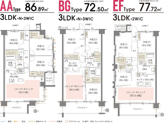 多彩なライフスタイルに応える平均専有面積70平方メートル 超、全48タイプバリエーション。