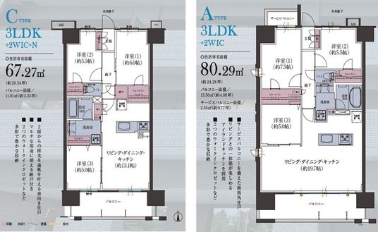 住居専有面積 : 67.27平方メートル ~128.07平方メートル