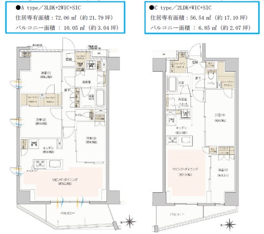 住居専有面積 : 56.54平方メートル ~87.05平方メートル (一部トランクルーム面積含む)