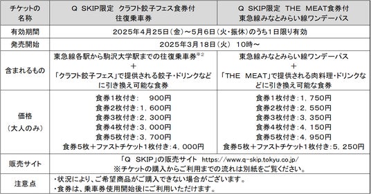 フードフェス「クラフト餃子フェス」や「THE MEAT」で使える食券と乗車券がセットになったおトクなチケットを3月18日(火)からデジタルチケットサービス「Q SKIP」で発売します