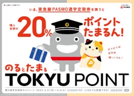 3. 子育て世代・学生の皆さまに向けたサービスとして、東急線PASMO(モバイルPASMOを含む)通学定期券の購入金額に対して、通常は最大4%のTOKYU POINTを加算するところ、本キャンペーン期間中は20%のTOKYUPOINTを加算する「春の通学定期券購入キャンペーン」も実施します。