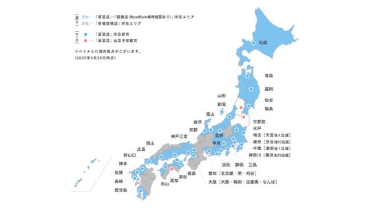 また、NewWorkは現在、全国45都道府県に拠点(各種提携店含む)を展開しており、このたび、2025年5月23日(金)(予定)にNewWork山形、2025年6月20日(金)(予定)にNewWork福島が開業することにより、会員が利用できる拠点が全都道府県に拡大します。