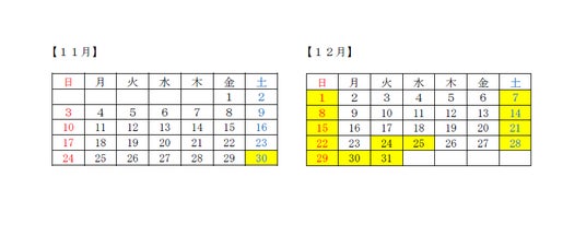 2024年11月30日(土)~2024年12月31日(火)うち14日間