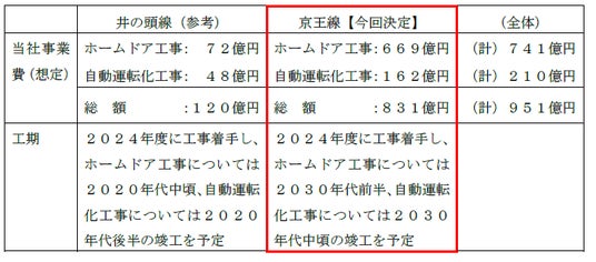 (※)井の頭線におけるホームドア工事および自動運転化工事の実施については、2024年2月5日開催の取締役会において決定しております。