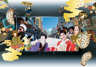 ソニーグループが提供する複合現実を体験できる設備を搭載した専用車両に乗車して、台東区の浅草・谷中・上野のエリアを走りながら、浮世絵・江戸文化をテーマにしたコンテンツを楽しめるものです。乗客は実際の車窓に映る景色とその場所に関連したCG・音声などを同時に見ることで、現代から江戸下町にタイムトリップしたような体験ができます。