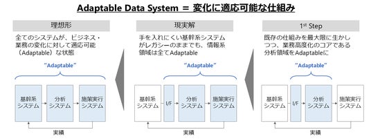 こうした考えのもと、当社は「変化に適応可能な仕組み=Adaptable Data System:略称ADS(アッズ)」を、新たなフレームワークとして提唱します。