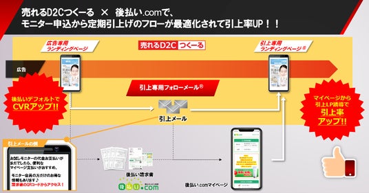 株式会社売れるネット広告社(本社:福岡県福岡市、代表取締役社長CEO:加藤公一レオ、東証グロース市場:証券コード9235、以下 売れるネット広告社)は、後払い決済サービスを提供する東証プライム市場上場企業である「スクロールグループ」の株式会社キャッチボール(本社:東京都品川区、取締役社長:端郁夫、以下 キャッチボール)との業務提携に基づき、「届いてから払い」(※1)と「売れるD2Cつくーる」の新料金プラン「成果応援プラン」の提供を開始いたします。