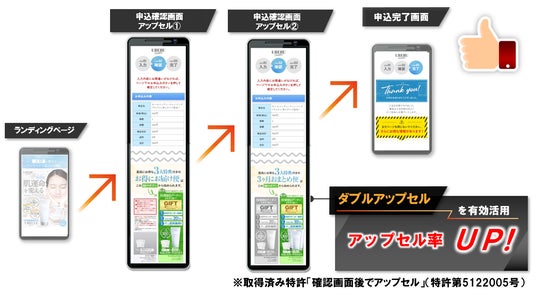 売れるネット広告社は、これまでも「確認画面後でアップセル(R)」という独自のノウハウで、お客様の購買体験を向上させながら売上増加に貢献してまいりました。このノウハウは特許として認められており(特許第5122005号)、多くのクライアント企業様に高い評価をいただいております。