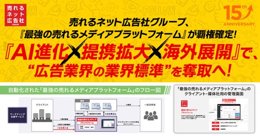 売れるネット広告社グループ株式会社(本社:福岡県福岡市、代表取締役社長 CEO:加藤公一レオ、東証グロース市場:証券コード 9235、以下 売れるネット広告社グループ)は、連結子会社である売れるネット広告社株式会社の主力サービスである『最強の売れるメディアプラットフォーム』を中核に、いよいよ“独占的業界インフラ”の確立フェーズへと突入いたしました。