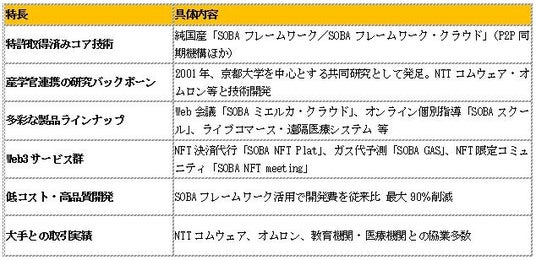 株式会社SOBAプロジェクトは、京都大学発の産学官共同研究から生まれたビジュアルコミュニケーション領域のフロントランナーです。特許取得済み『SOBAフレームワーク』の研究開発には、総額約10億円の投資が行われ、5大学(京都大学・東京大学・東京工業大学・慶応義塾大学・早稲田大学)と2社の企業(NTTコムウェア・オムロン)を含む産学官コンソーシアムが参画しました。