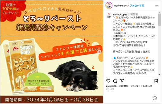 株式会社ラバブルマーケティンググループ(本社:東京都港区、代表取締役社長:林 雅之)の子会社で、企業のSNSマーケティング支援を行う株式会社コムニコ(所在地:東京都港区、代表取締役:長谷川 直紀)は、森永乳業のペットフード事業部門として、商品の開発と販売を行う株式会社森乳サンワールド様に、チャットボットツール「autou(オウトウ)」を導入いただき、「autou」を活用したInstagramキャンペーンを実施していただきました。