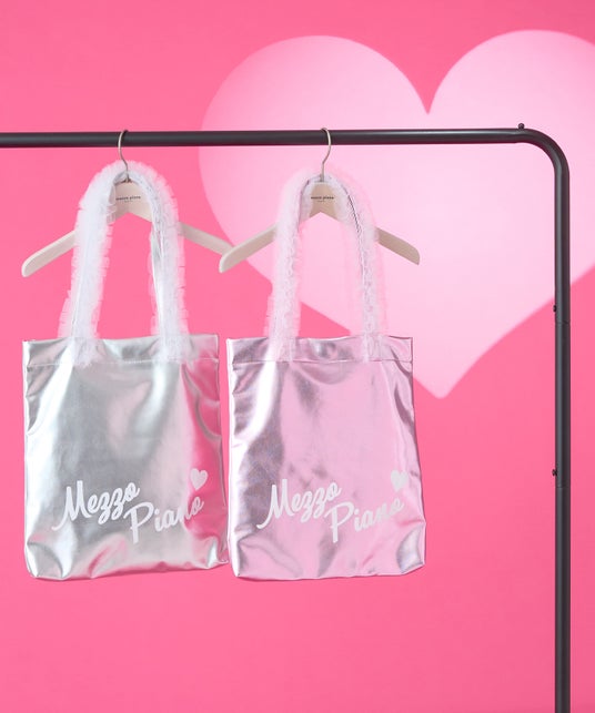 BIGリボンのメタリック合皮×チュール持ち手が特徴のCUTEなトートバッグ。裏地にはバービー誕生65周年を記念したロゴグラフィックを使用し、内側まで可愛らしさを追求!BarbieとMEZZO PIANOのロゴデザインで、程よいサイズ感がデイリーや習い事にも最適です。