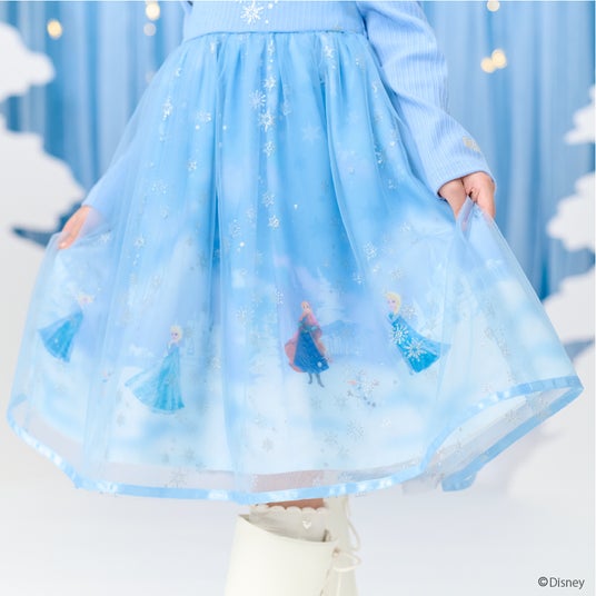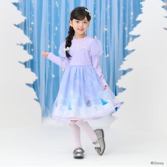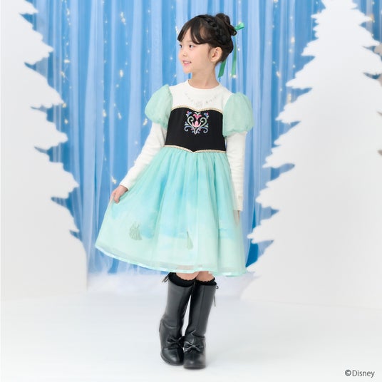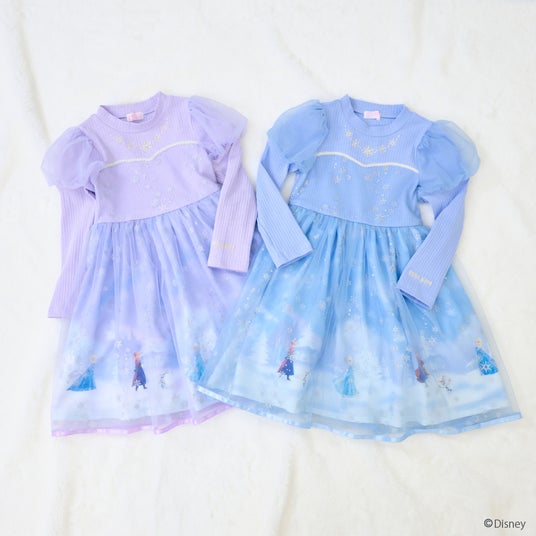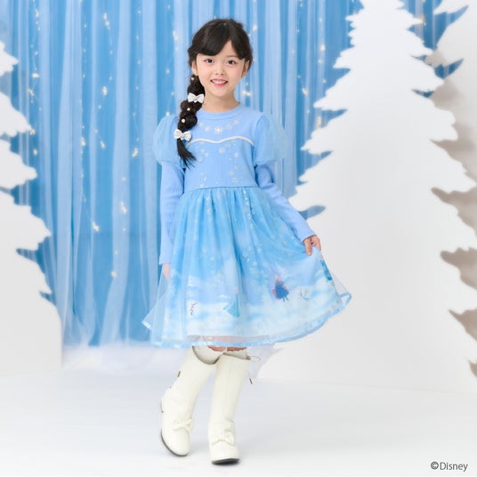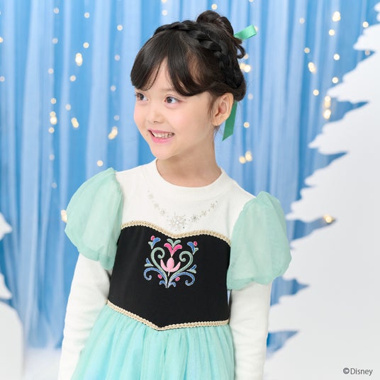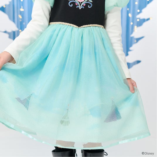 『アナと雪の女王』の世界観をたっぷりと詰め込んだドッキングワンピースは、チュールを重ねてボリュームのあるシルエットを作り、ドレス感をアップしました♪